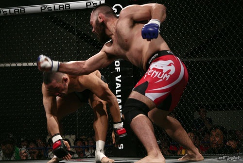 パンチの猛ラッシュを仕掛ける安西(右)勝ちのフィニッシュは全て打撃だ。