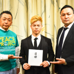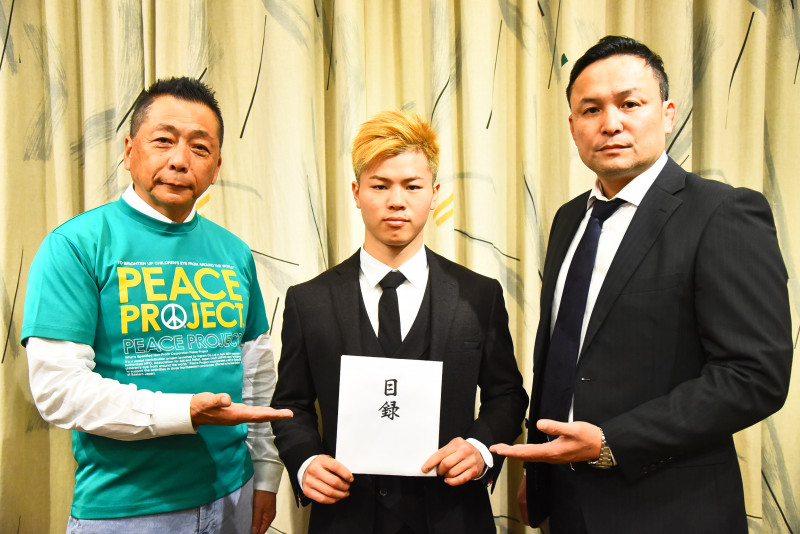(左から)ピースプロジェクト・加藤勉代表、那須川天心、RISE伊藤隆代表