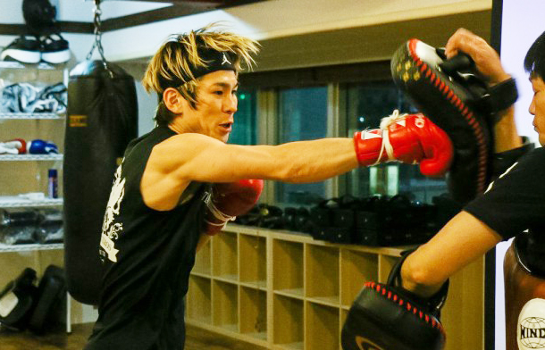 ”石の拳”と呼ばれる強打をミットに打ち込む