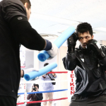 スティックを使用しガードと攻撃を練習