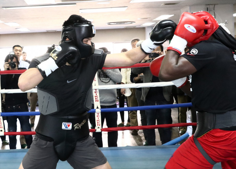 スパーリングを繰り広げる村田(左)とアイザイア(右)