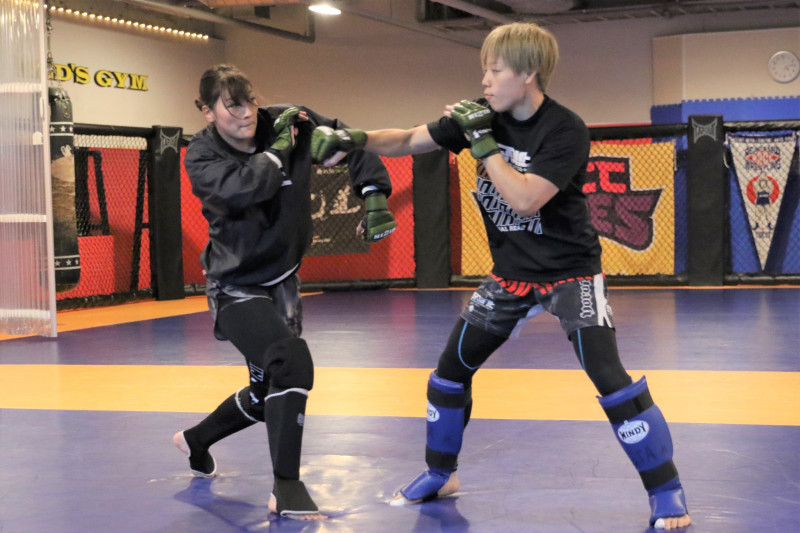 公開練習ではRENA(左)がサウスポーに構え"仮想ハム・ソヒ"に変身