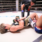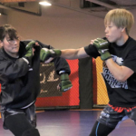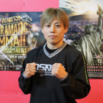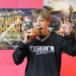 喰ってやる!とばかりにハムにかじりつく浜崎、3度目の対戦に向け準備は万全