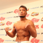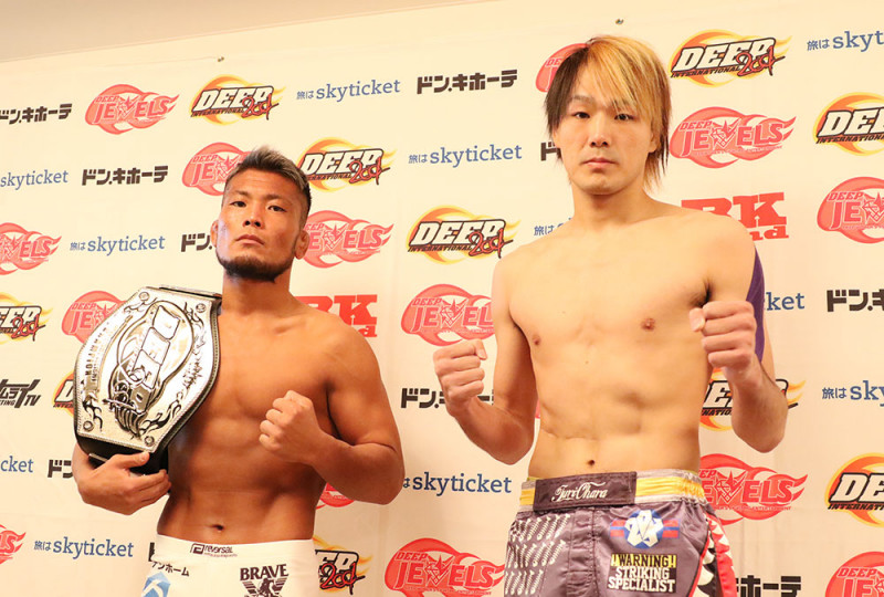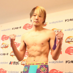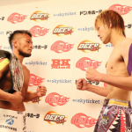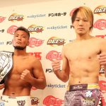 身長170cmの武田(左)と180cmの大原(右)が、共に70.20kgで計量パス