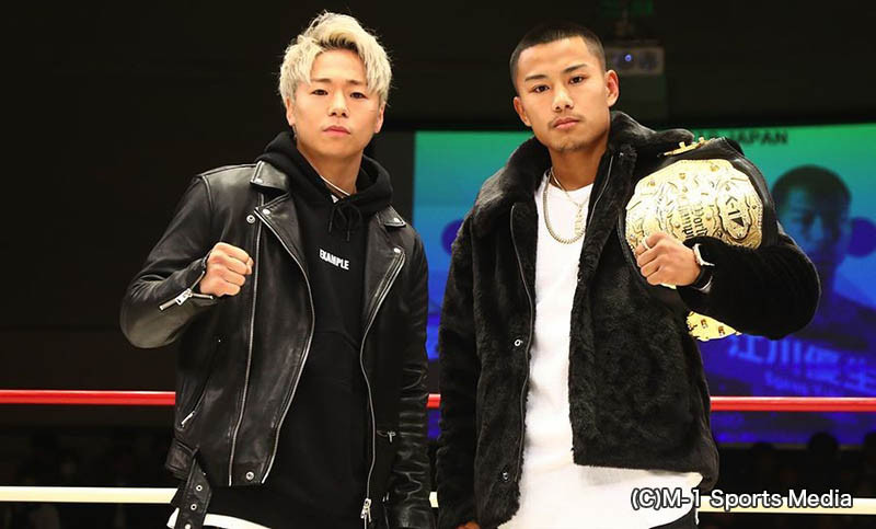 武尊(左)と江川優生の王者対決ががエキシで実現