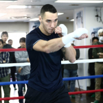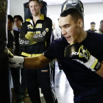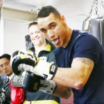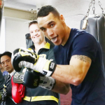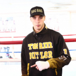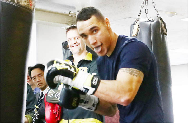 秘密主義? 軽くパンチを出しながら記者を見て舌を出すバトラー
