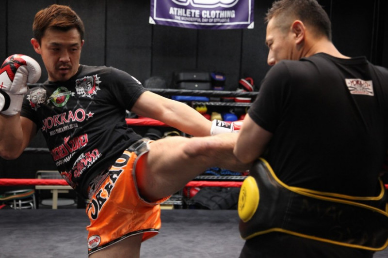 左ミドルを蹴り込む大和(左)(C)M-1 Sports Media