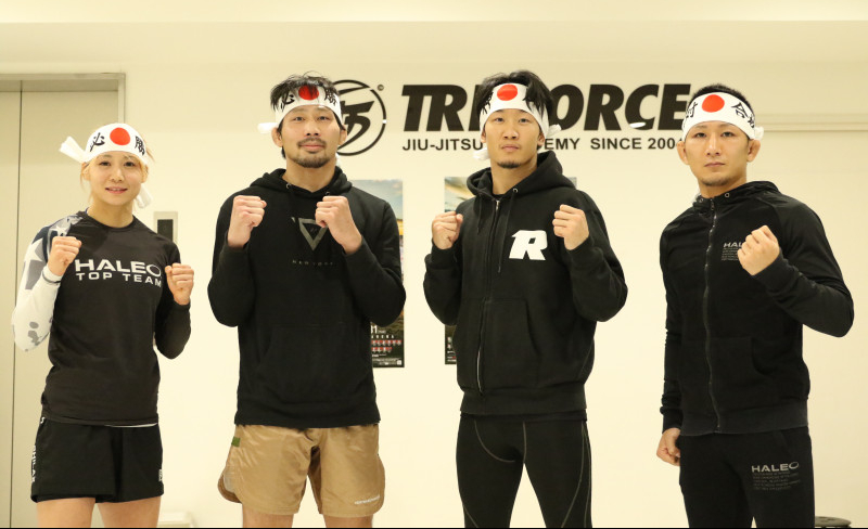 同日公開練習に臨んだ渡辺華奈(左)、元谷友貴(右)と並んだ「チームRIZIN」