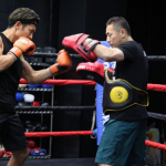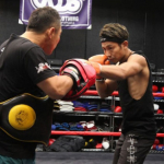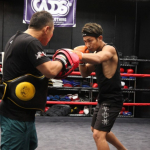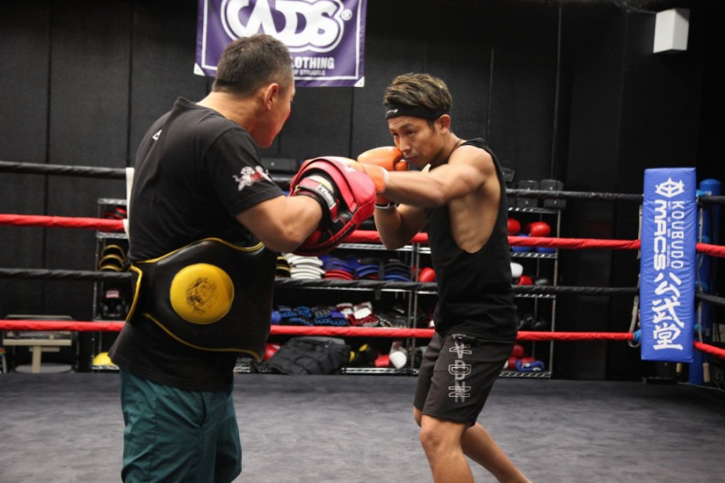 ミットに豪腕を叩きつける大岩(右)(C)M-1 Sports Media