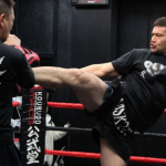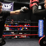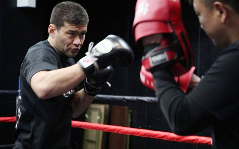 重量級ならではのミット打ちを披露した加藤(左)(C)M-1 Sports Media