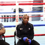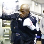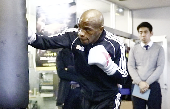 呼吸乱れず、サンドバッグで連打を打ち込むムザラネ