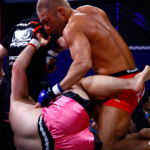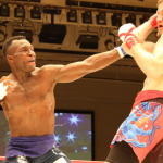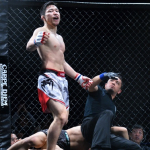 パウンド連打でTKO勝利する桜井