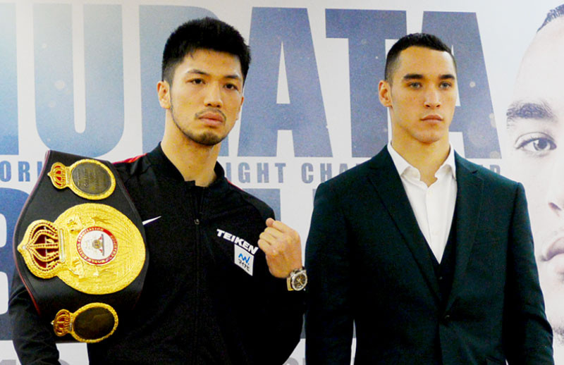調印式に出席した村田(左)と挑戦者バトラー