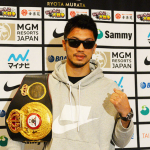 試合直後の囲み会見で左目周辺が既に腫れている。