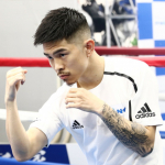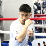 公開練習でシャドウで汗を流す井岡