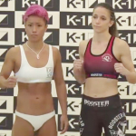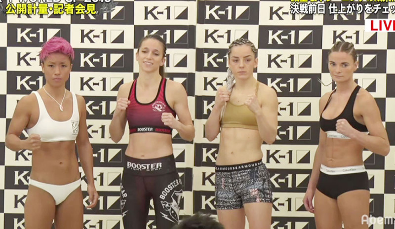 K-1初の女子トーナメントに出場する4選手。左からKANA、モラレス、ノットソン、ヘウヘス(C)AbemaTV