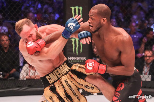 強烈な右フックを叩き込むペイジ