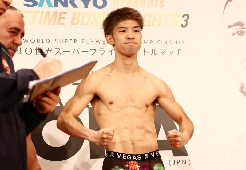 田中が計量をクリアすると力強いマッスルポーズ