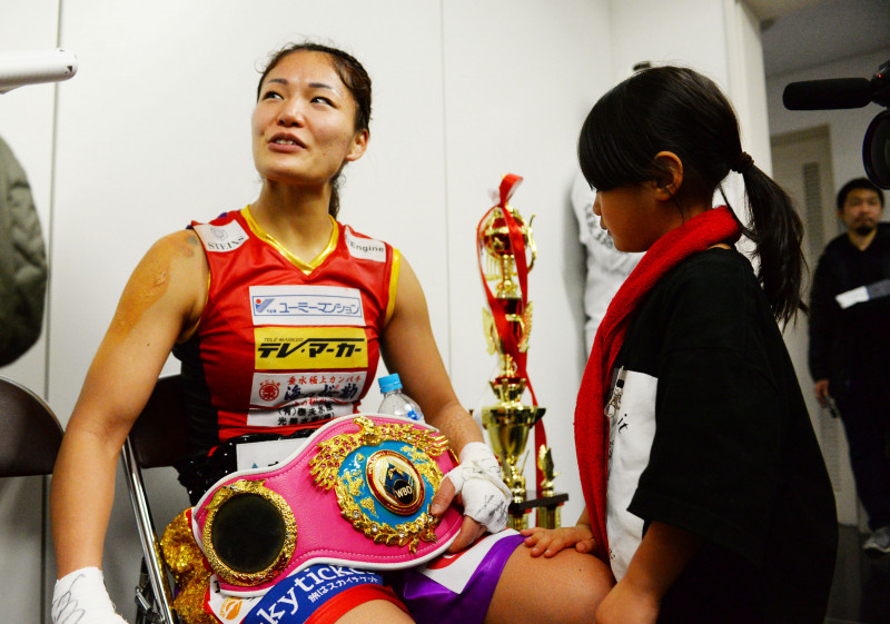 控え室で語る吉田。右は長女の実衣菜ちゃん