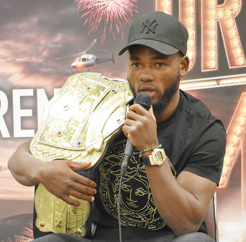 RIZINバンタム級のベルトを肩に抱えたケイプ