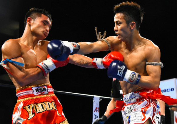 昨年2月のKODOでは王者ヨードイをKOで下しWPMF王座を獲得した石井(右)