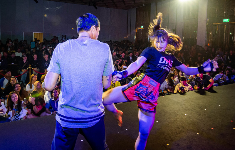 イベントでミット蹴りを行うスタンプ