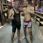 福田を指導するサガット氏。ゲーム「ストリートファイター」"サガット"のモデルにもなった人物だ。