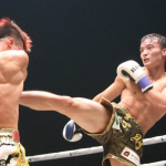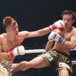 那須川天心にミドルキックを蹴る志朗=19年9月