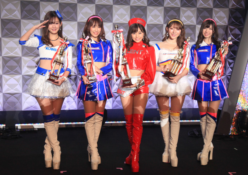 日本レースクイーン大賞を受賞した5名、左から中村比菜、霧島聖子、川村那月、神尾美月、生田ちむ