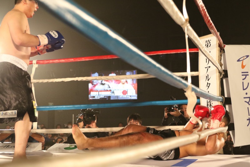 メインイベントで山下力也が体格に勝るフェルダオスからダウンを奪うと会場は熱狂