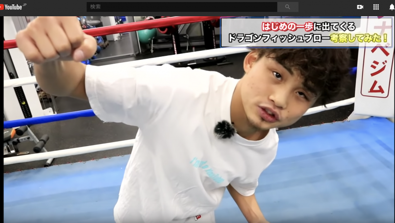ドラゴンフィッシュブローを実演する京口(YouTube『京口紘人チャンネル』より)