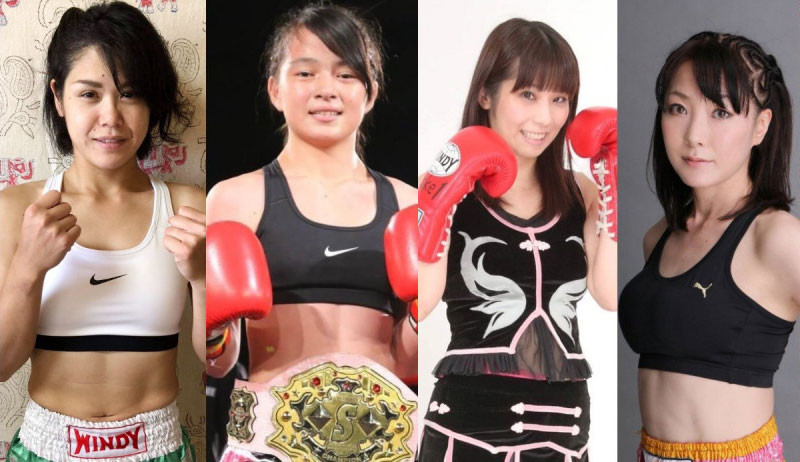 DUEL第1部のメイン・セミに出場する4選手が意気込み、左から真美、KAEDE、芳美、エミ