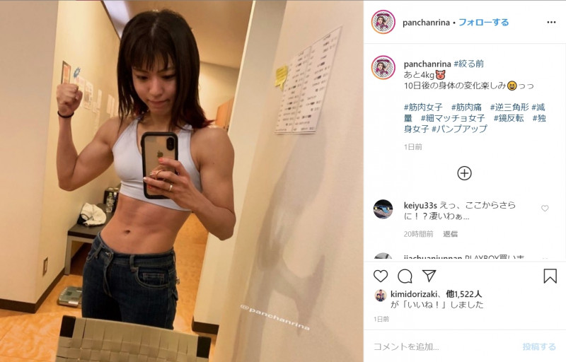 自身のSNSでは体の仕上がりを公開、確かに筋肉がすごい@panchanrinaより