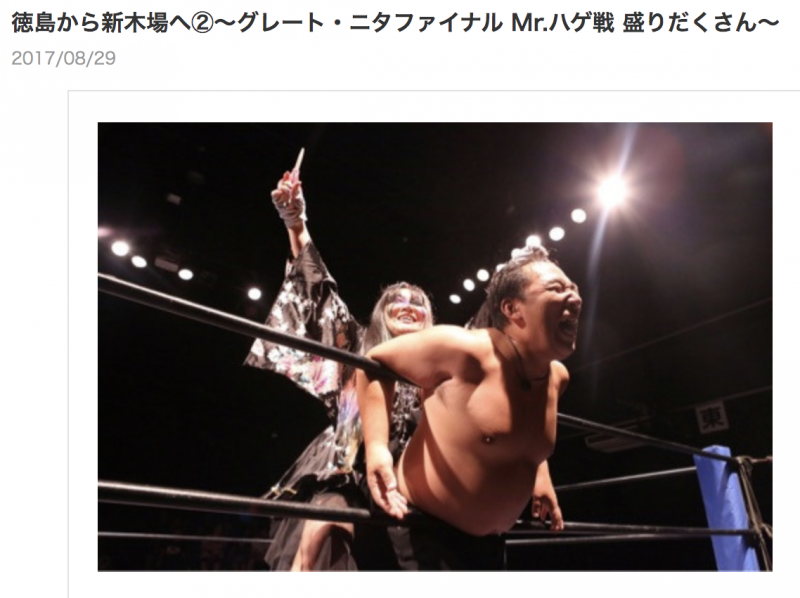 男子レスラーMr.ハゲの髪をハサミで切ろうとするミス・モンゴル(ミス・モンゴルブログより)