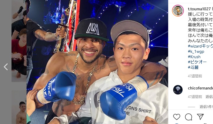 野杁に勝利したピケオーと、花道で肩を組む斗麗