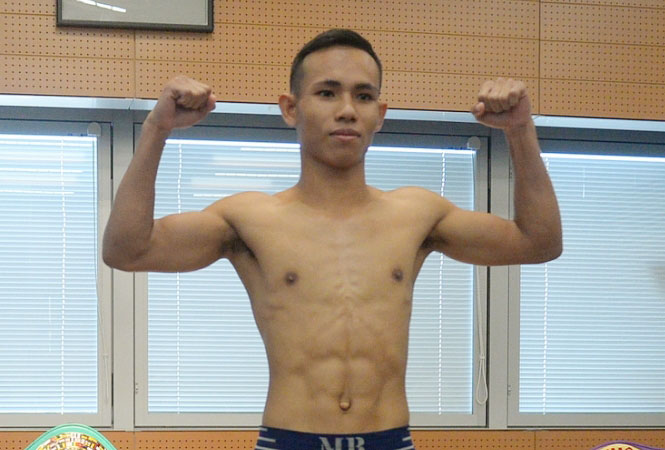 割れた腹筋を披露しマッスルポーズのウドンノーイ