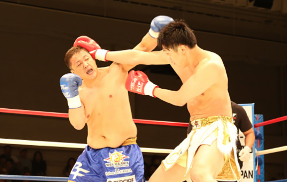 ぷよぷよのお腹ながら猛打で突進する植村真弥