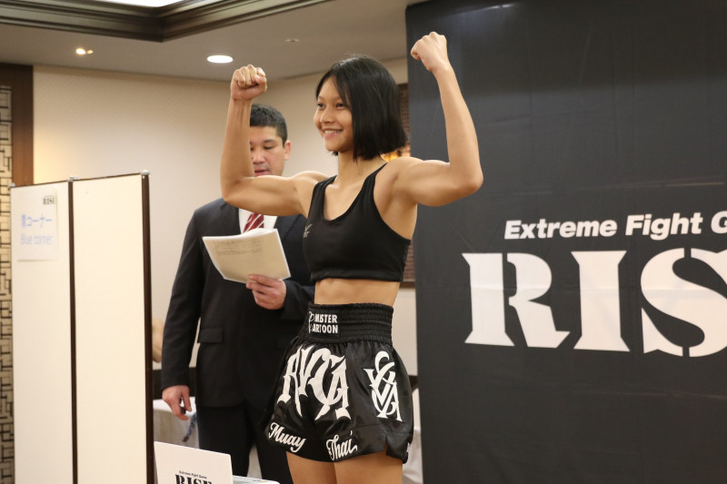 スラリと伸びた手足が美しいアンナは計量パスしマッスルポーズ