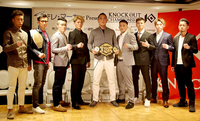 無法島GPに参戦する8選手が計量パス、会見に出席した。中央は漫画『無法島』作者の森恒二氏