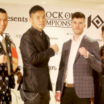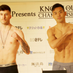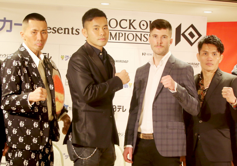 計量後の会見に出席した(左から)良太郎、日菜太、マーシャル、スアレック