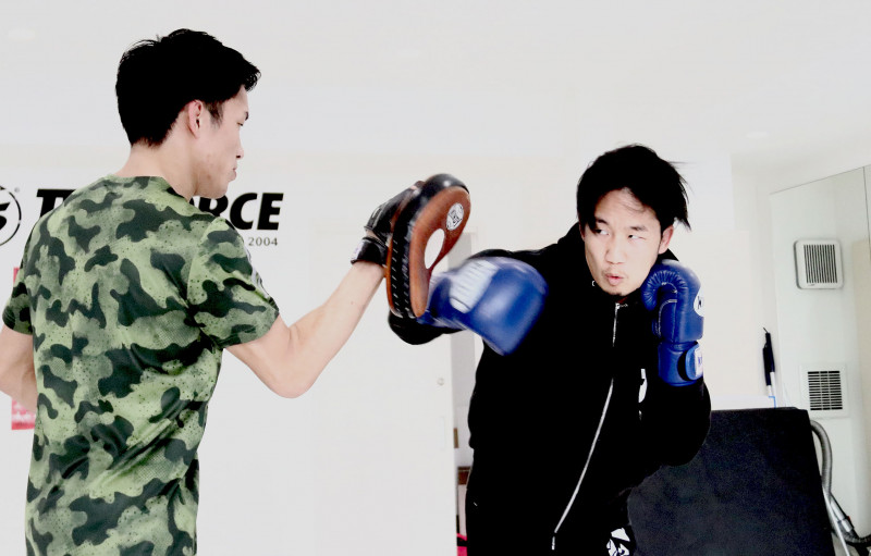 強烈な奥手の右を放つ朝倉未来。持ち手は弟・海