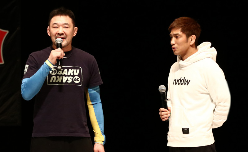 筋肉の祭典「マッスルコンテスト」に登壇した桜庭(左)と所