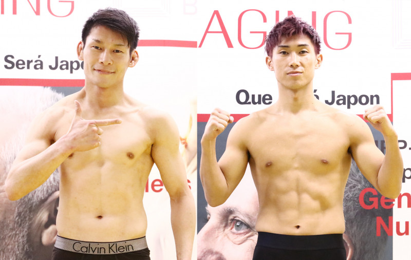 町田(左)、宮越ともに計量を一発パス。サムライvsニンジャ対決の行方はいかに