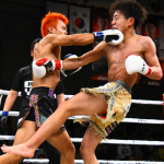 RISE初参戦のムエタイ2冠王の大﨑一貴(左)と連勝で勢いづく風音(右)