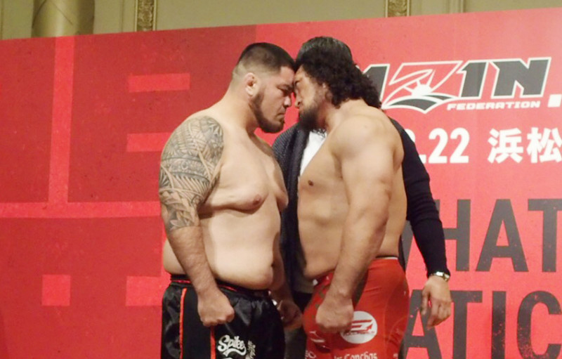 頭を付き合わせ睨み合う関根(右)とマルティネス