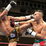 WKBA王座防衛戦においてタイ人強豪をパンチで追い込む緑川