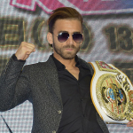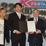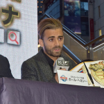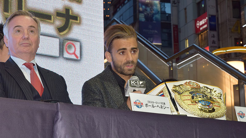 ISKAヨーロッパ代表のヘネシー氏(左)も同席のもと、タイトルマッチへの意気込みを述べるブアフフ