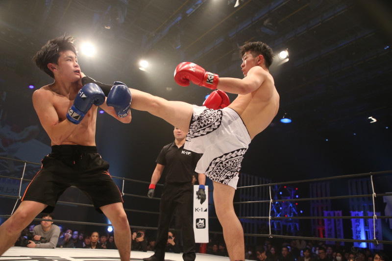 古宮がリーチある前蹴りが相手の顔面にヒットする(C)AbemaTV