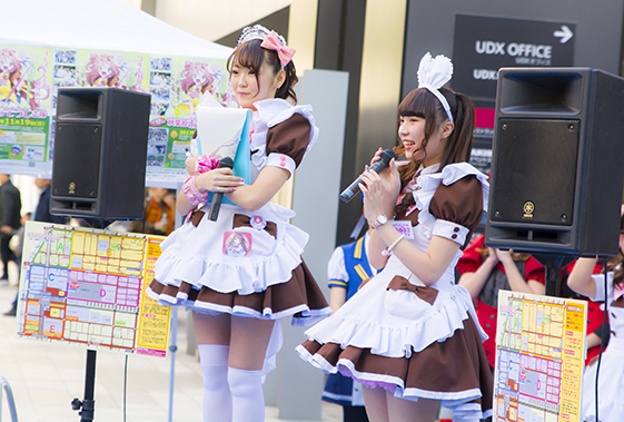 秋葉原で15年の老舗『@ほぉ〜むカフェ』のミニスカートのメイドさん=秋葉原の屋外イベントにて
