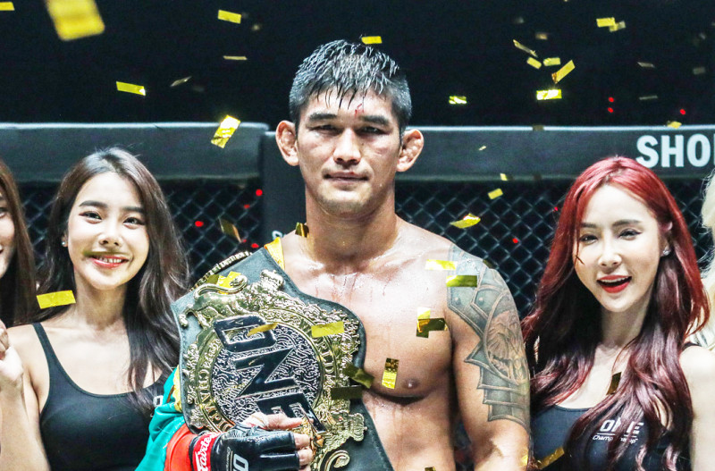 19年10月のONE日本大会のメインでTKO防衛し表彰されるンサン